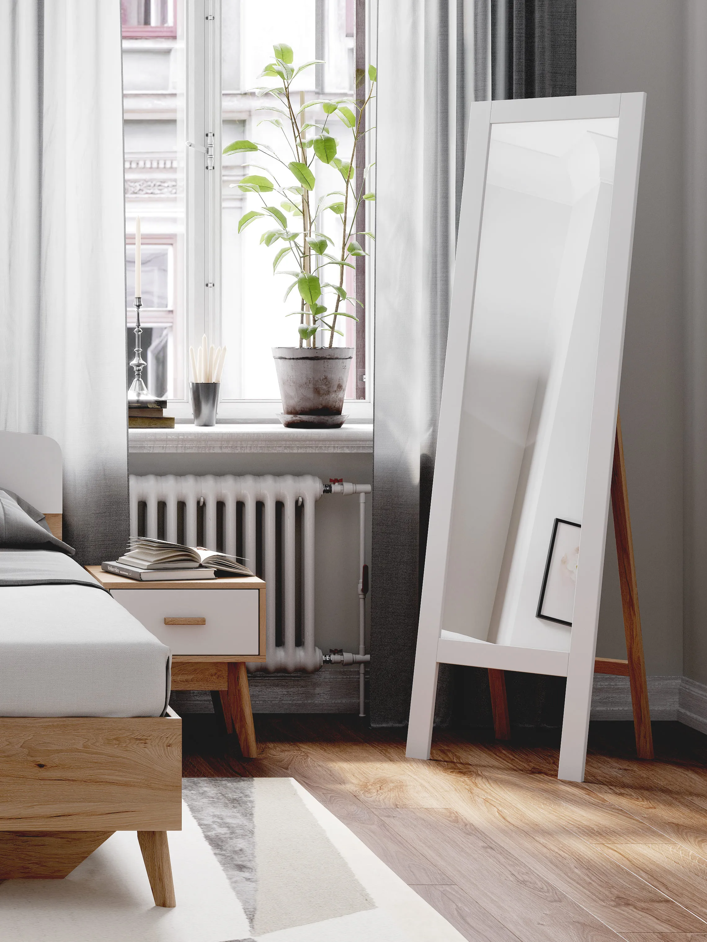 Напольное зеркало покорит Вас удивительным сочетанием простоты и элегантности. Вертикальная прямоугольная форма в сочетании с теплой древесной текстуры, создают идеальный баланс и моментально преображают интерьер. Простая, практичная спальня или гостиная станет стильной и привлекательной благодаря такому оригинальному объекту. При необходимости достаточно легко складывается. Удобно покажет вас в полный рост.