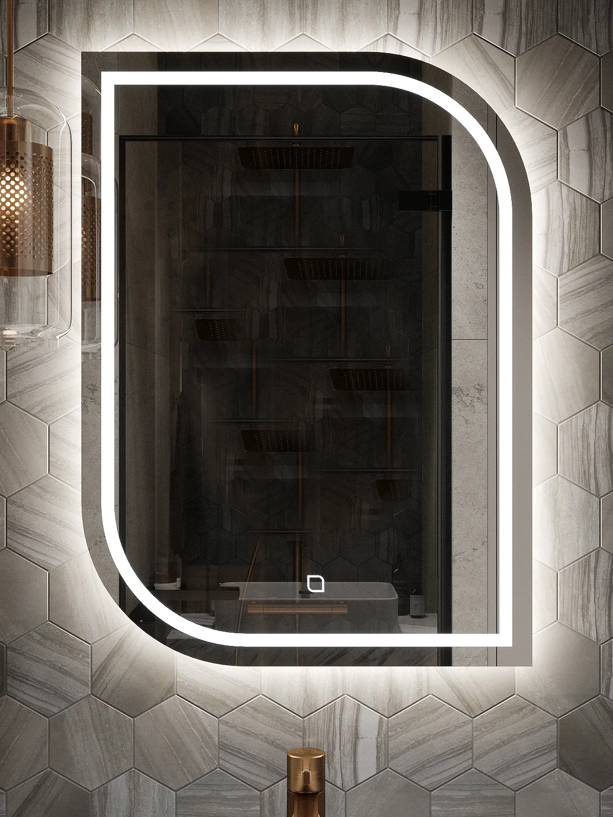 пескоструйная обработка в виде полосы шириной 15 мм, повторяющая контур зеркала